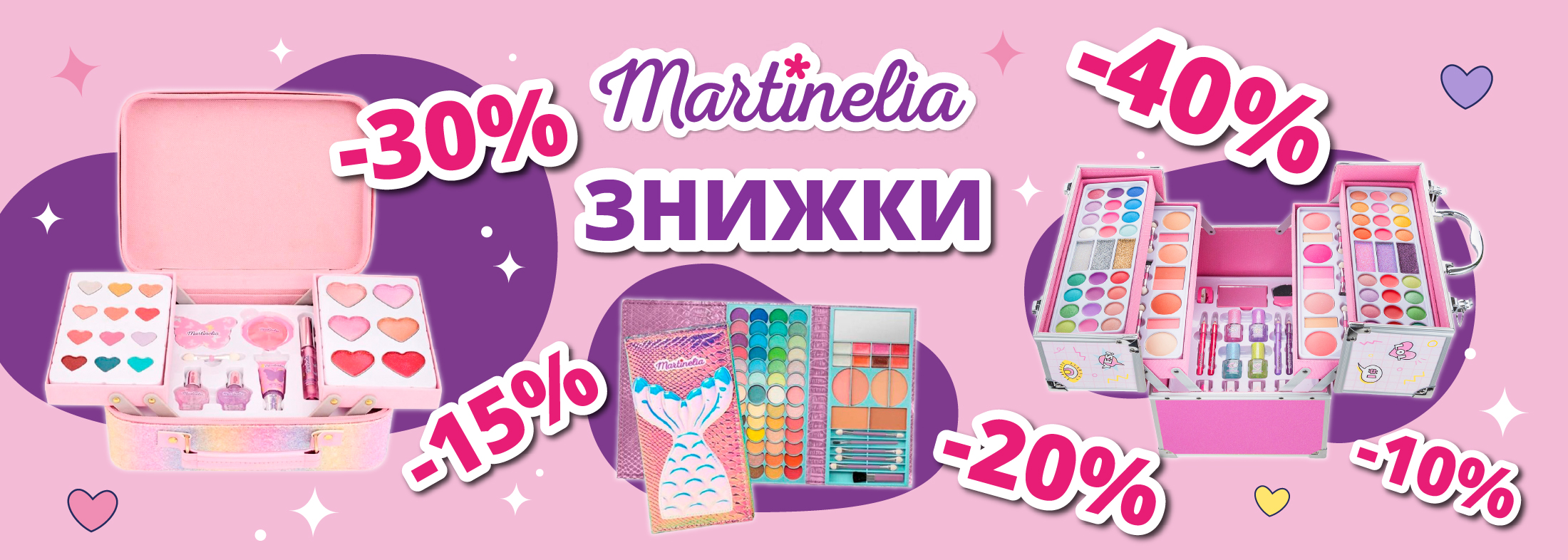 Акция действует с 01.04.2024 по 30.04.2024, исключительно в магазинах сети «Будынок Игрушек». Под фразой «Крути колесо скидок от Martinelia и получи скидку на кассе до 40%» следует понимать при оформлении покупки любого товара скидку получит 1 (один) из 4800 (четырех тысяч восьмисот) уникальных акционных промокодов с указанной скидкой от 10% до 40% на весь ассортимент TM Martinelia. Для применения скидки в момент проведения расчетной кассовой операции покупатель должен предъявить безошибочно и в правильном порядке все символы акционного уникального промокода. 1 (один) уникальный акционный промокод применяется на 1 (один) товар с ТМ Martinelia и не распространяется на другие товары ТМ Martinelia, имеющиеся в том же чеке. Покупатель имеет право самостоятельно выбрать на какой именно товар из чека ТМ Martinelia будет распространяться скидка. Скидка с указанным процентом может быть использована с 1 апреля по 30 апреля 2024 года. Уникальный акционный промокод действует только один раз при совершении покупки и не может применяться для получения скидки на следующие покупки.
